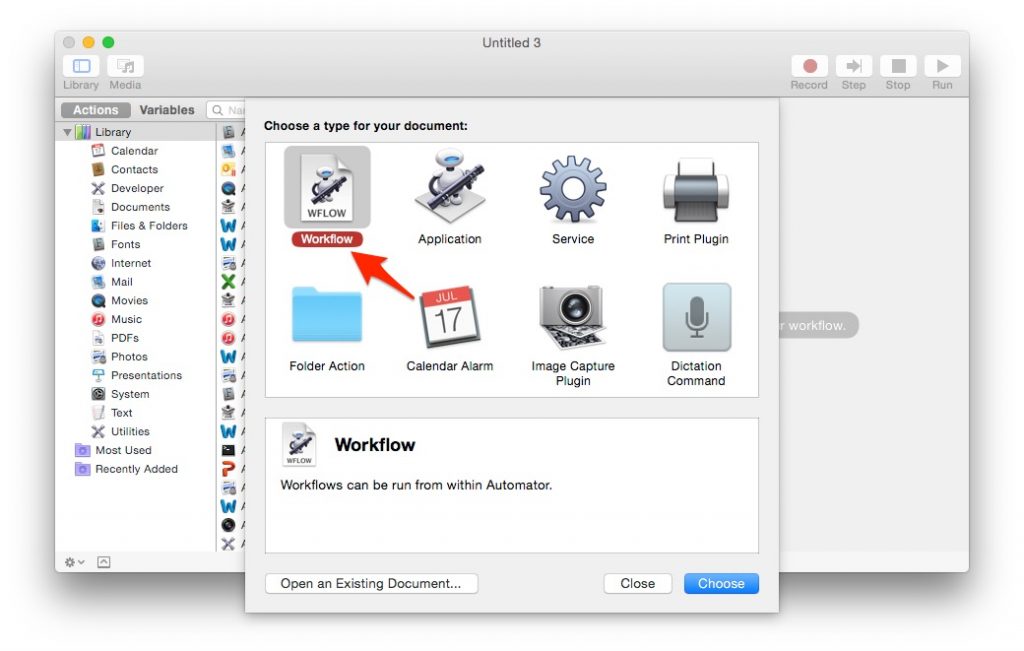 Önce Automator’dan yeni bir akış yaratıyoruz;